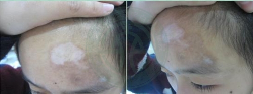 患者于2年前身体出现白斑,后于重庆市某医院确诊及治疗,口服药外用药(具体不详)及培植治疗,有部分好转,今年暑假复发,遂于今日来我院就诊
